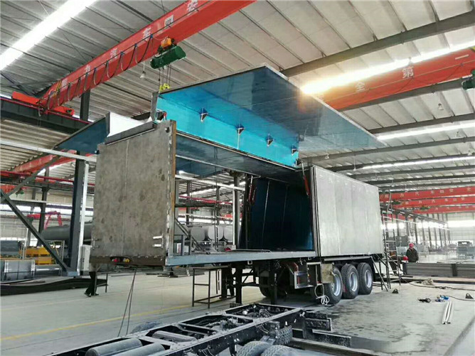 廂體生產(chǎn)工藝采用可產(chǎn)生靜電屏蔽效應(yīng)通風(fēng)防雨的冷扎透氣鋼板,中間附以B1級(jí)阻燃擠塑板,內(nèi)飾鋁合金板,廂內(nèi)四周內(nèi)飾采用鋁合金角鋁型材壓邊。廂內(nèi)安裝固定運(yùn)載物的臥環(huán),防燃煙霧報(bào)警器,門上安裝防盜報(bào)警器,前置安裝防撞防靜電膠皮。廂體門框采用三元乙丙一次成形橡膠密封條,底部為防爆鋼板上鋪靜電膠板。