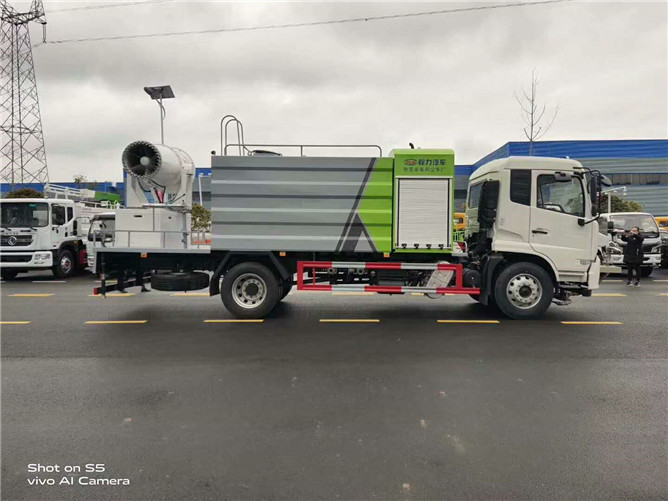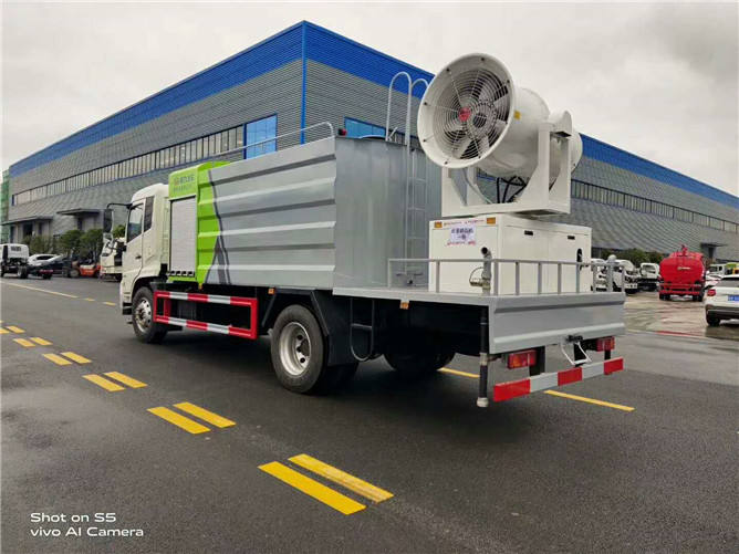12立方東風(fēng)多利卡D9抑塵車,環(huán)保免征齊全,搭載玉柴200馬力/康機210馬力發(fā)動機,水罐溶積12立方,大平臺最高可裝100米車載專用霧炮,整車不超重。