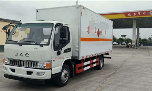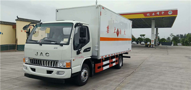 江淮駿鈴易燃液體運輸車搭載濰柴130馬力發(fā)動機,1900單排前翻駕室,排氣管前置,ABS,前盤,限速裝置,700R16鋼絲胎,氣剎后雙輪胎。5.15米的廂體。