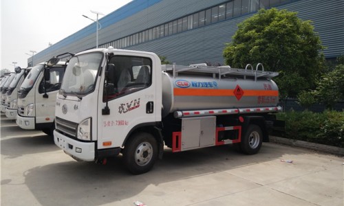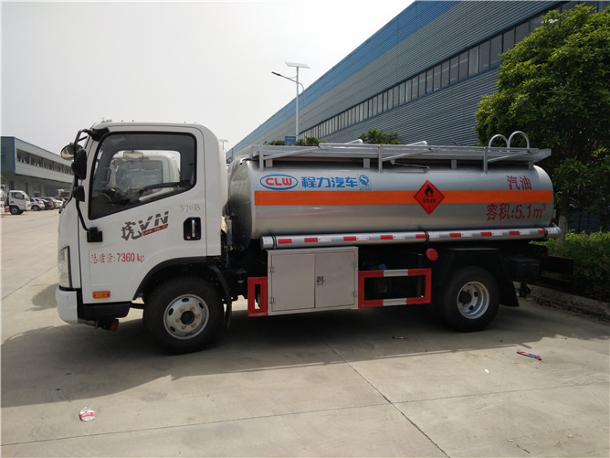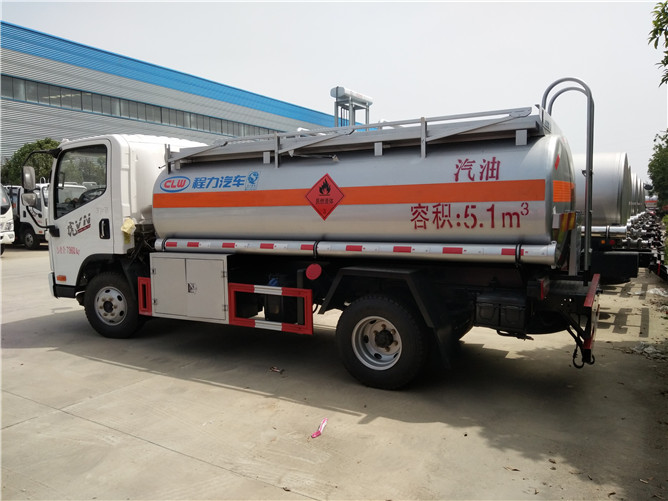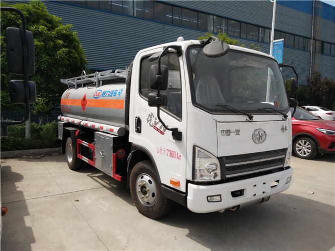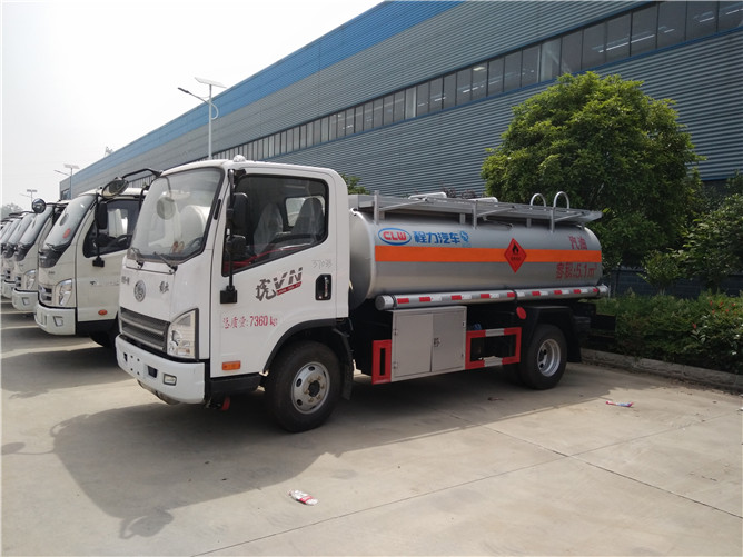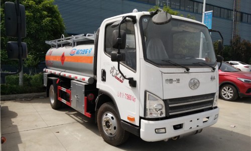 解放加油車,有效容積5.1立方,單倉帶60/30齒輪泵帶正興大流量加油機,碳鋼4.5mm板材,3300軸距,95馬力濰柴發(fā)動機。