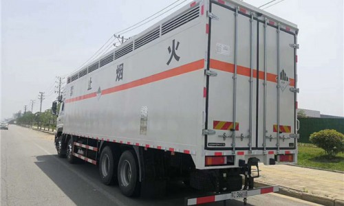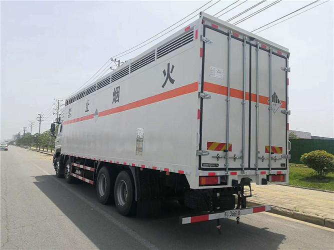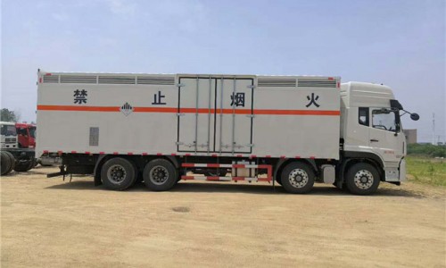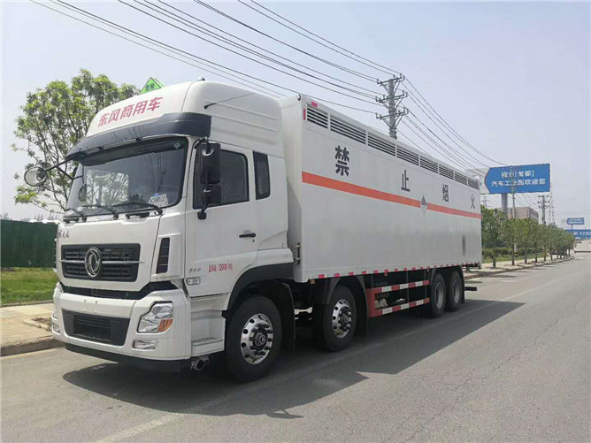 東風天龍前四后八雜項危險品運輸車搭載東風商用車350馬力發(fā)動機,廂長9.6米,可運輸9類雜項危險品,如含銅廢物、含鎳廢物,適合長途運輸。