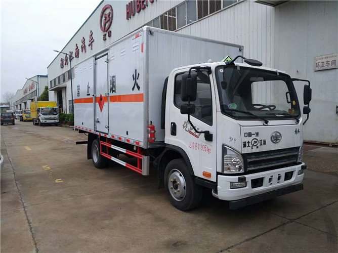 解放爆破器材運(yùn)輸車搭載濰柴160馬力發(fā)動(dòng)機(jī),額載7120kg,準(zhǔn)乘人數(shù)3人,是款比較暢銷的小型黃牌危險(xiǎn)品運(yùn)輸車。