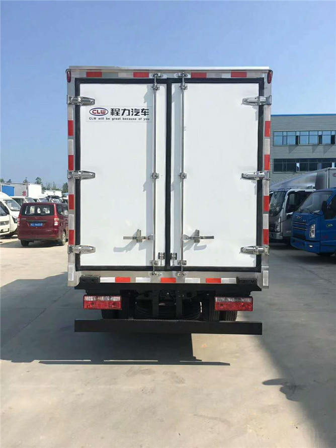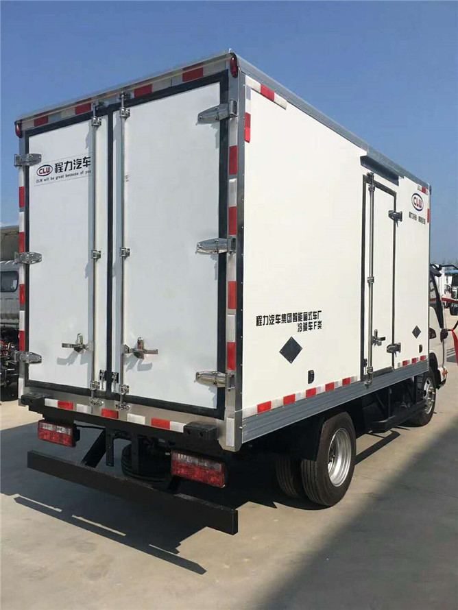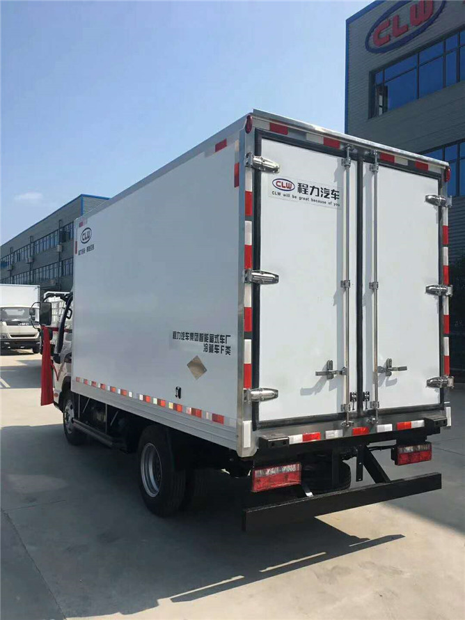 廂體配置:廂體采用內(nèi)外玻璃鋼板,中間為8CM保溫板,鋁質(zhì)花紋防滑底板。右側(cè)開單側(cè)門。搭配星輝-15°制冷機組。