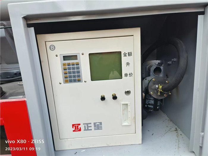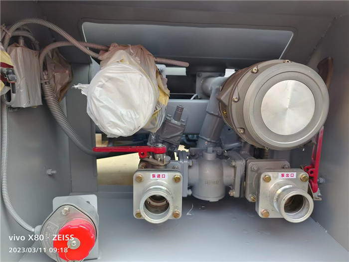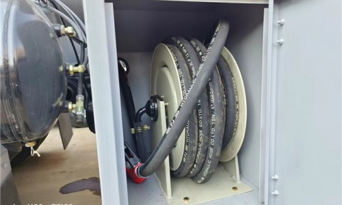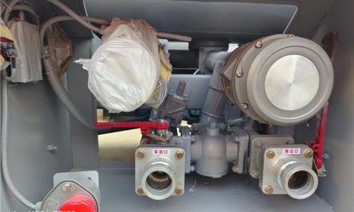 該加油車配置通倉帶歐標(biāo)全套下裝油系統(tǒng)(含1個(gè)下裝卸油閥、1個(gè)油氣回收閥、1個(gè)油氣回收接口、1套氣動(dòng)組合開關(guān)、1個(gè)防溢流探桿和1個(gè)插座),一只歐標(biāo)罐蓋,一個(gè)海底閥,罐體頂部兩側(cè)帶折疊升降防護(hù)欄,標(biāo)配顏色灰色,罐體兩側(cè)正中貼3M-1級(jí)橙色反光帶,貼三個(gè)“易燃液體”標(biāo)識(shí),安全告示牌。