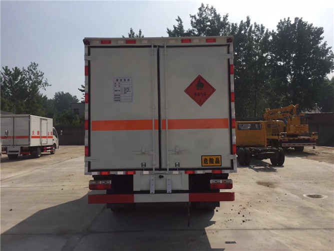 我公司生產(chǎn)的氣瓶運(yùn)輸車廂體為雙層金屬結(jié)構(gòu),廂體尾部雙開(kāi)門,外板采用靜電屏蔽冷軋鋼板,中間填充B1級(jí)阻燃泡沫,內(nèi)飾為鋁板。廂體上側(cè)安裝防雨通風(fēng)透氣孔。底板為花紋板,上鋪防靜電膠皮,廂內(nèi)兩側(cè)加裝固定貨物臥環(huán),門框帶防盜報(bào)警器,頂部帶氣味報(bào)警器,底盤(pán)上裝有兩條拖地導(dǎo)靜電膠帶,廂體外側(cè)安裝示廓標(biāo)記燈以及手提滅火器等安全裝置(選裝隔板、側(cè)門)。