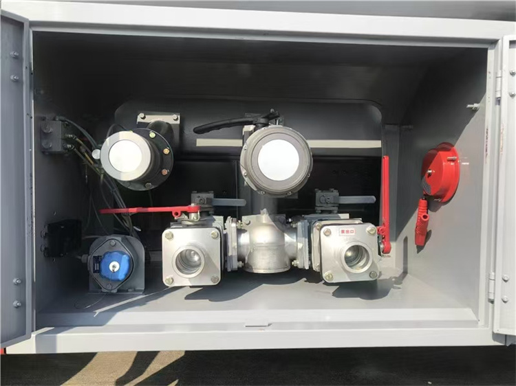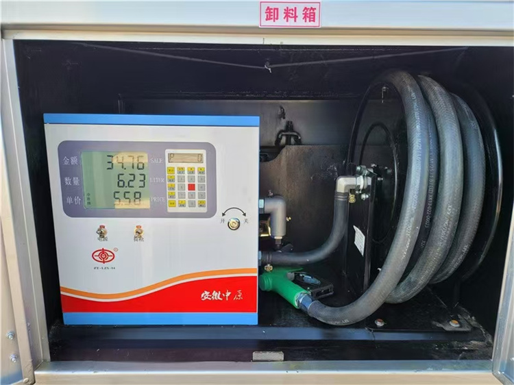 罐體配置:罐體容積7.5方,采用Q235優(yōu)質(zhì)碳鋼板材,標(biāo)配大流量油泵(可泵進泵出),標(biāo)配單倉帶歐標(biāo)全套下裝油系統(tǒng)(含1個下裝卸油閥、1個油氣回收閥、1個油氣回收接口、1個防溢流探桿和1個五芯插座),一只歐標(biāo)罐蓋,一只緊急切斷閥(帶智能語音報警裝置),安裝大流量加油機,15米卷盤和1.5寸加油槍,罐體頂部兩側(cè)帶折疊升降防護欄,標(biāo)配銀灰色油漆,罐體兩側(cè)正中貼3M-1級橙色反光帶,貼三個“易燃液體”標(biāo)識,安全告示牌,合適位置安裝一只工具箱,其它均為廠家標(biāo)配。