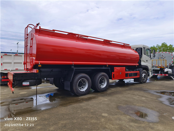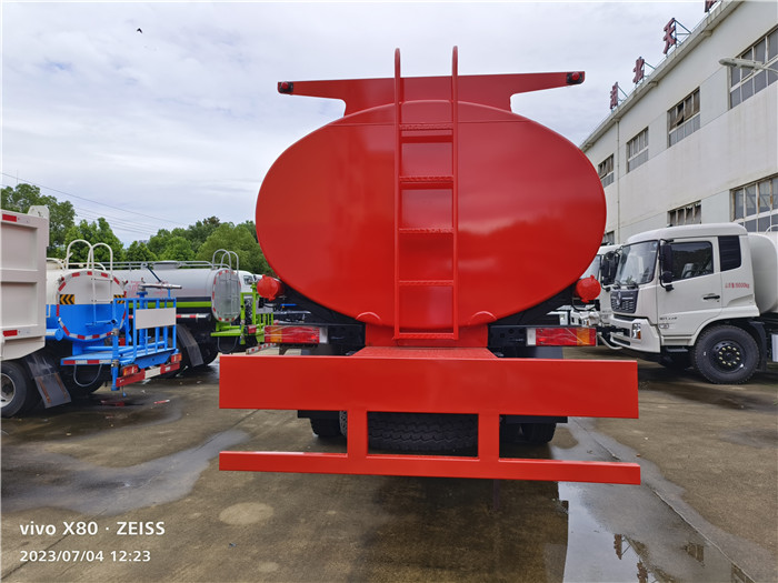 公告容積:21.8方,罐體實(shí)際有效容積22.5方,罐體采用高強(qiáng)度鋼材,全自動(dòng)焊工藝,封頭6MM(水壓封頭),罐體5.5-5.7MM,2倉(cāng)2個(gè)快開式人孔,國(guó)標(biāo),卸料閥3寸2件,單倉(cāng)帶泵進(jìn)泵出,2條PVC軟管,罐頂兩側(cè)活動(dòng)護(hù)欄(折疊),帶海底閥及歐標(biāo)罐口,兩根與罐體同長(zhǎng)出油管、兩個(gè)滅火器、一根爬梯、前封頭上端左右加裝一個(gè)導(dǎo)水管、帶靜電卷盤、后封頭上端左右各一個(gè)爆閃燈、帶安全告示。